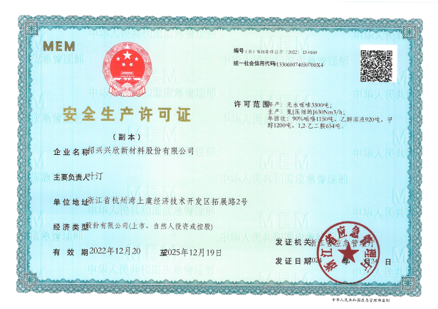 紹興興欣新材料股份有限公司成立于2002年06月27日,占地面積122畝,位于杭州灣上虞經濟技術開發(fā)區(qū)拓展路2號,現(xiàn)有職工200余人,專業(yè)技術人員50余人;博士、碩士研究生30余人組成的一支知識型、專業(yè)化的技術科研團隊。公司面向全球市場,專業(yè)開發(fā)電子化學品、環(huán)保化學品、醫(yī)藥中間體、高分子材料等先進新材料重點領域的省級科技型企業(yè);建有浙江上虞、安徽東至兩個生產基地。目前為“國家高新技術企業(yè)”、浙江省“隱形冠軍”企業(yè)、浙江省專精特新中小企業(yè);建有“省級”研究開發(fā)中心,共建天津大學浙江紹興研究院電子化學品研發(fā)中心。
